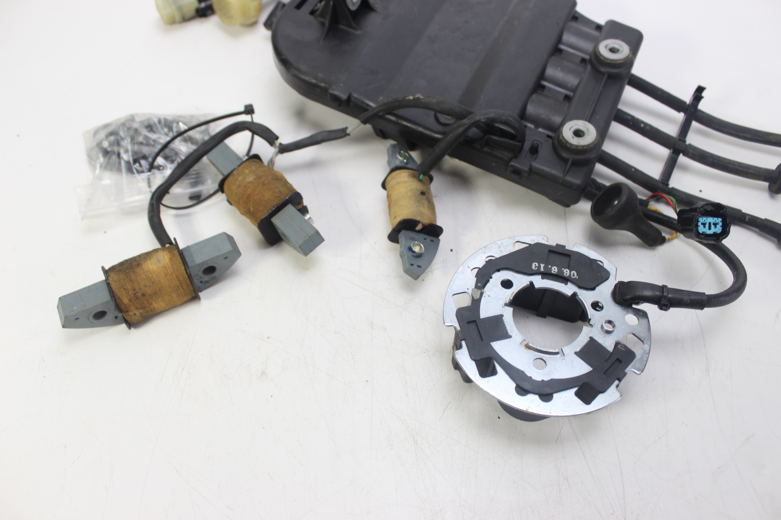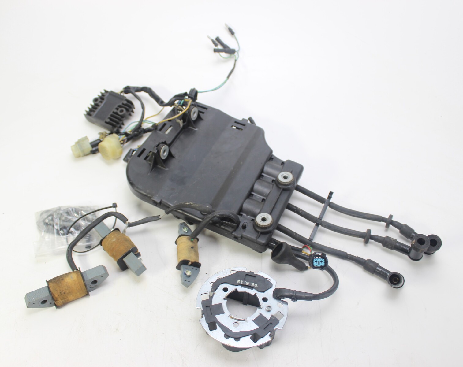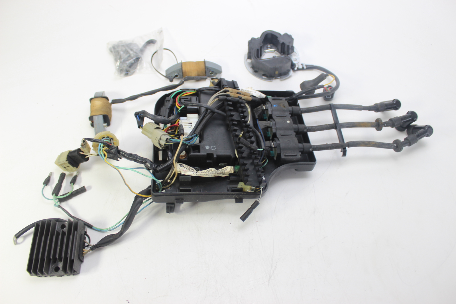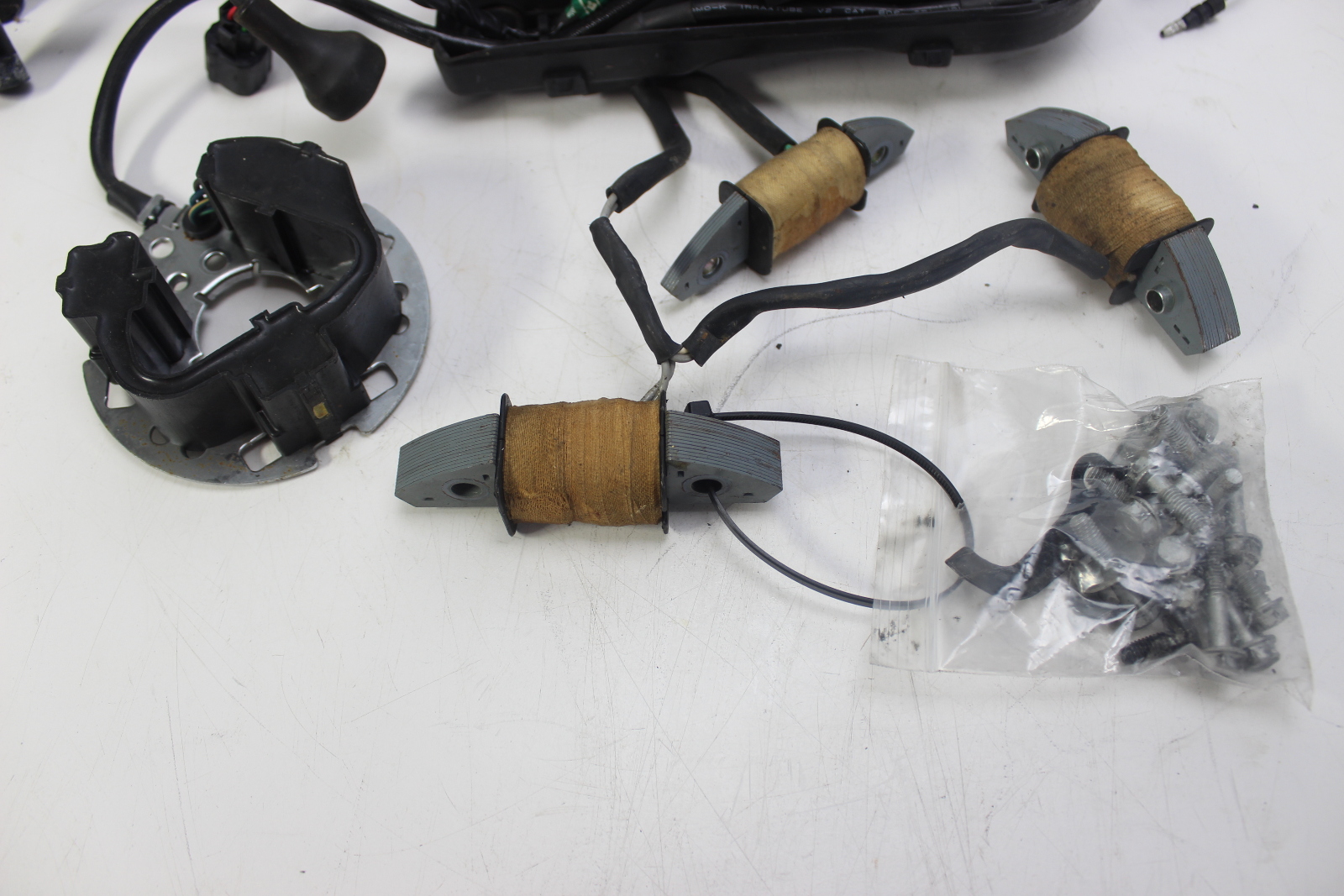This listing includes the ignition control module, ignition coils, stator coils, pulser coil, and engine wiring harness removed together from the same engine.