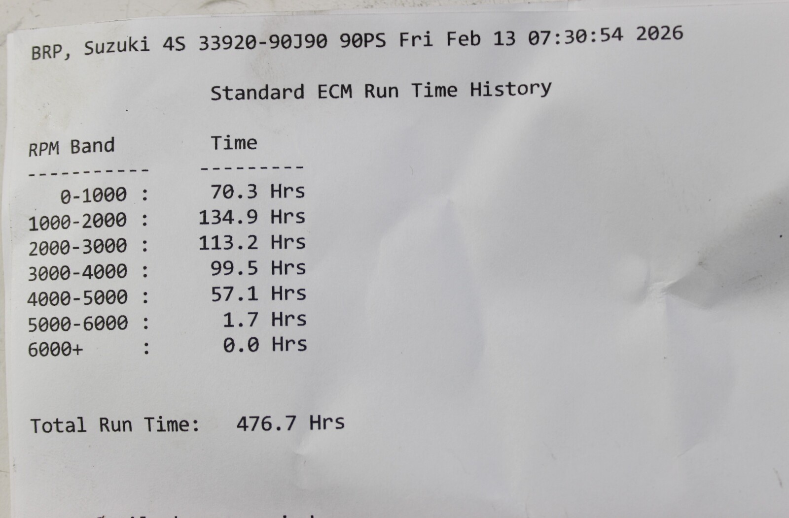 The engine had 476 run hours at the time of removal.
