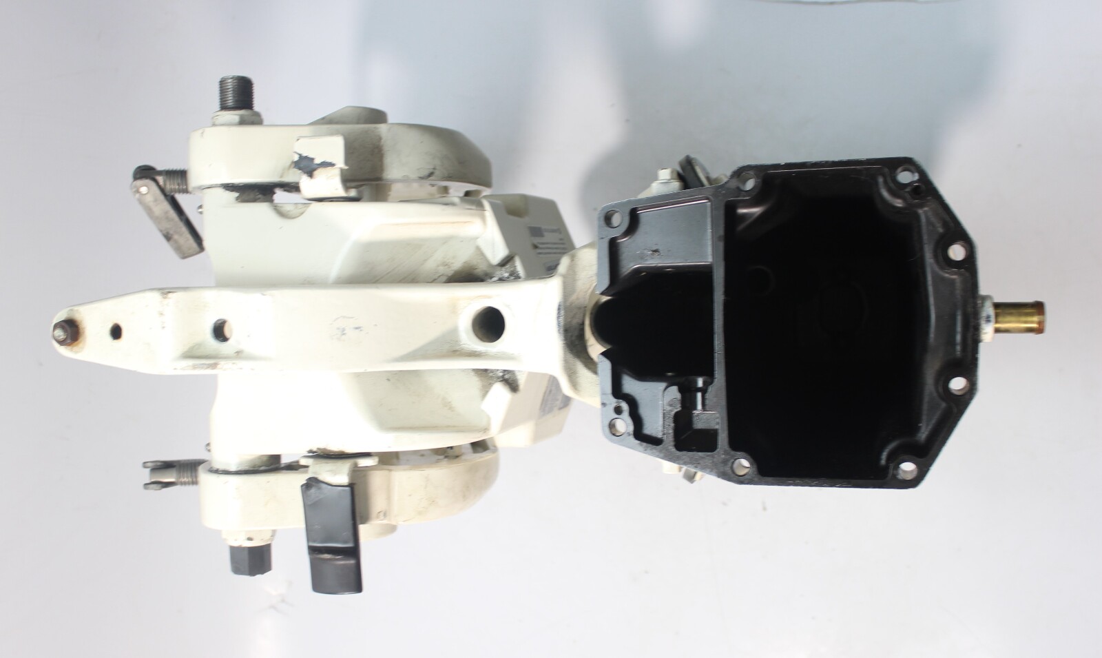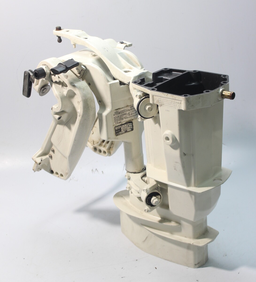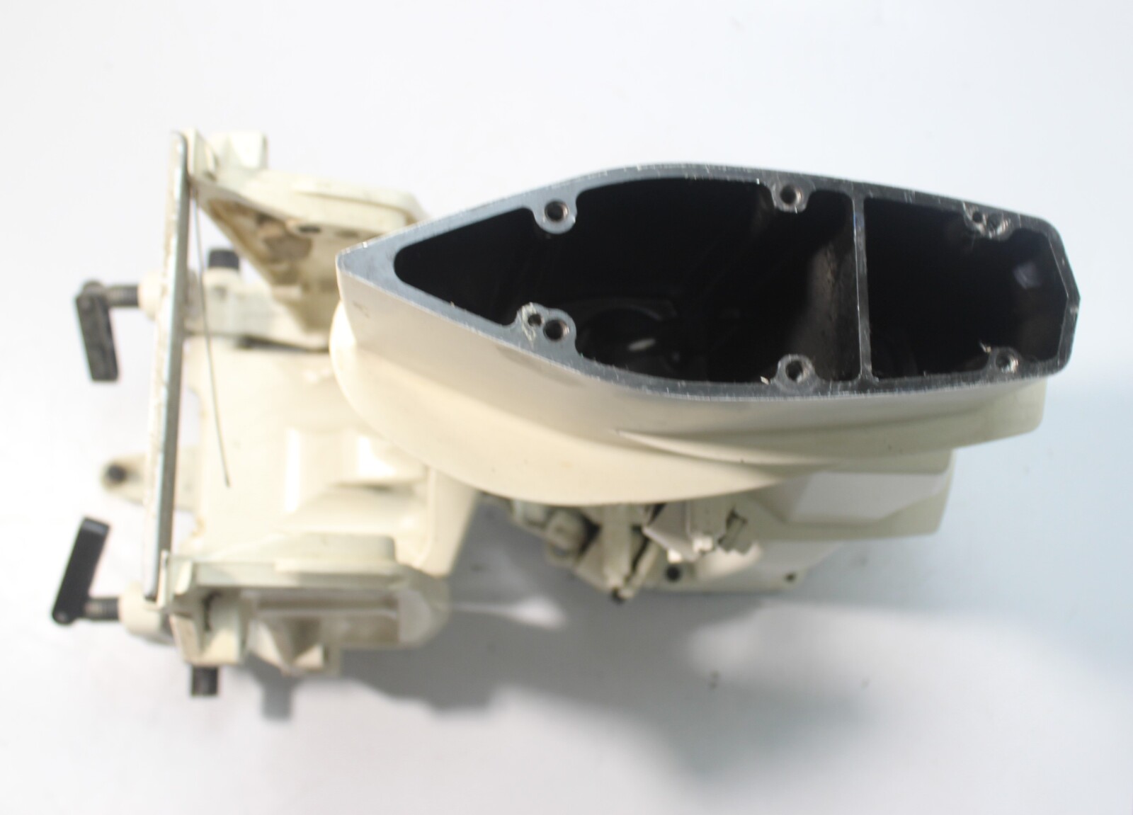 OEM Evinrude E-TEC midsection assembly removed from a 2010 Evinrude E-TEC 15 HP outboard (model E15HPSLHS).