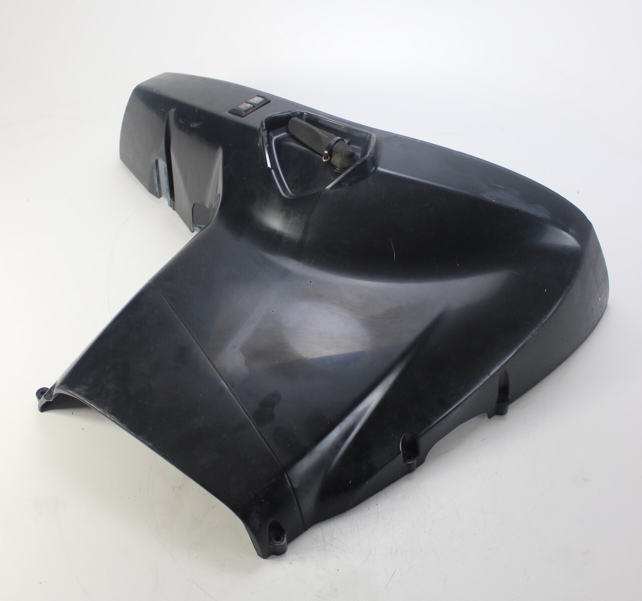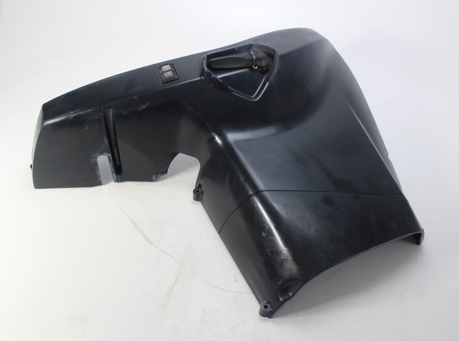 This is an OEM BRP/Evinrude housing that protects the lower side of the powerhead and provides access to the integrated power trim switch.