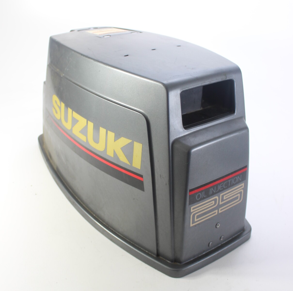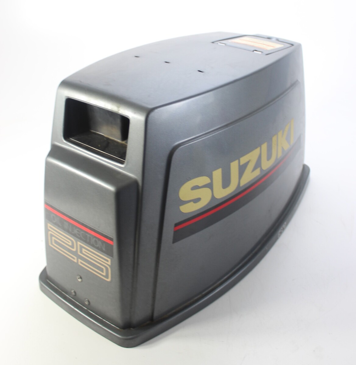 OEM Suzuki top cowl / engine hood for the DT-series 2-stroke outboards.