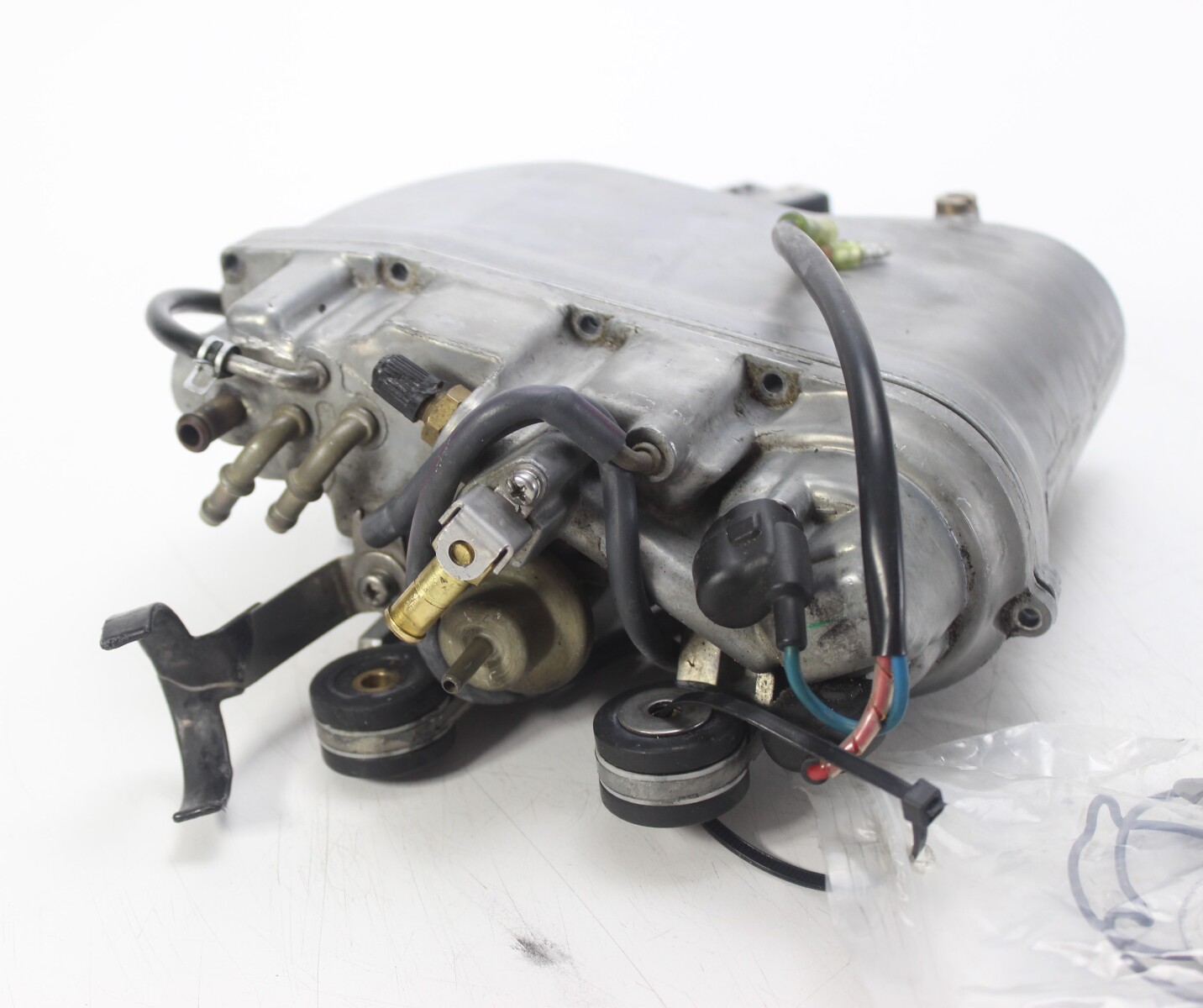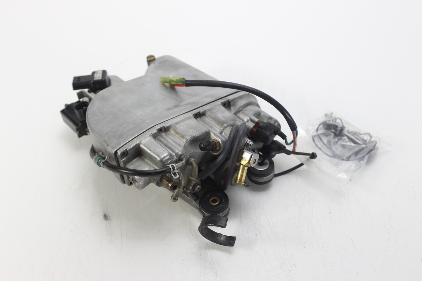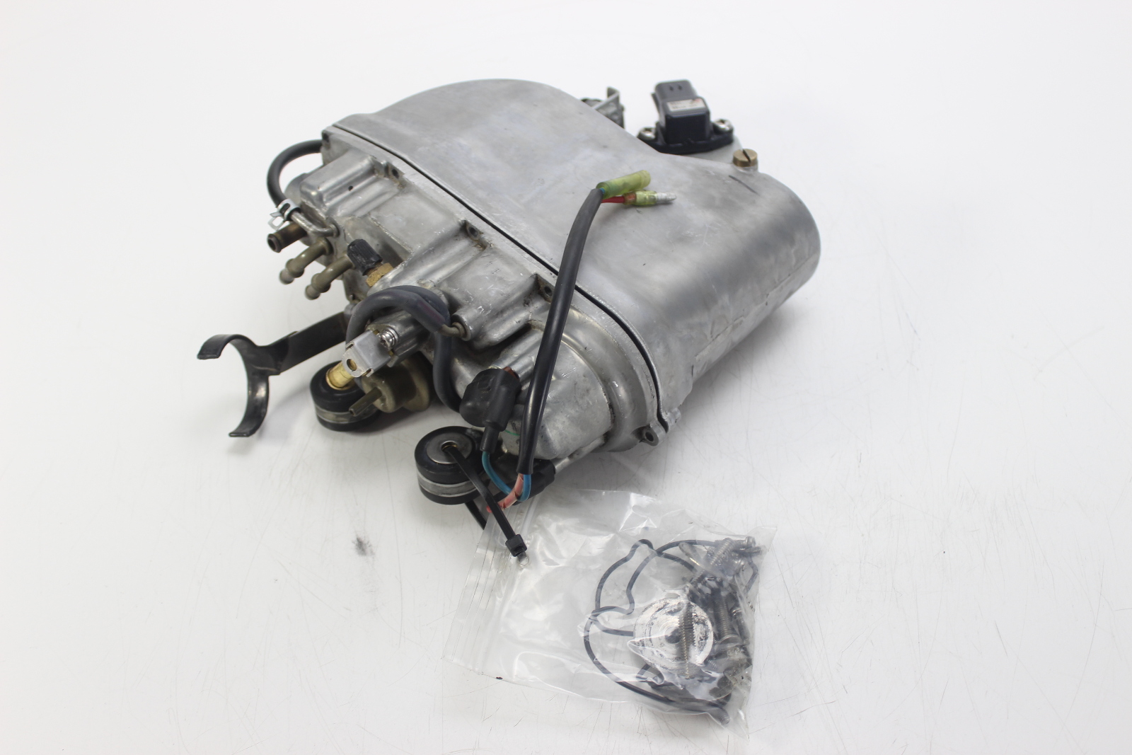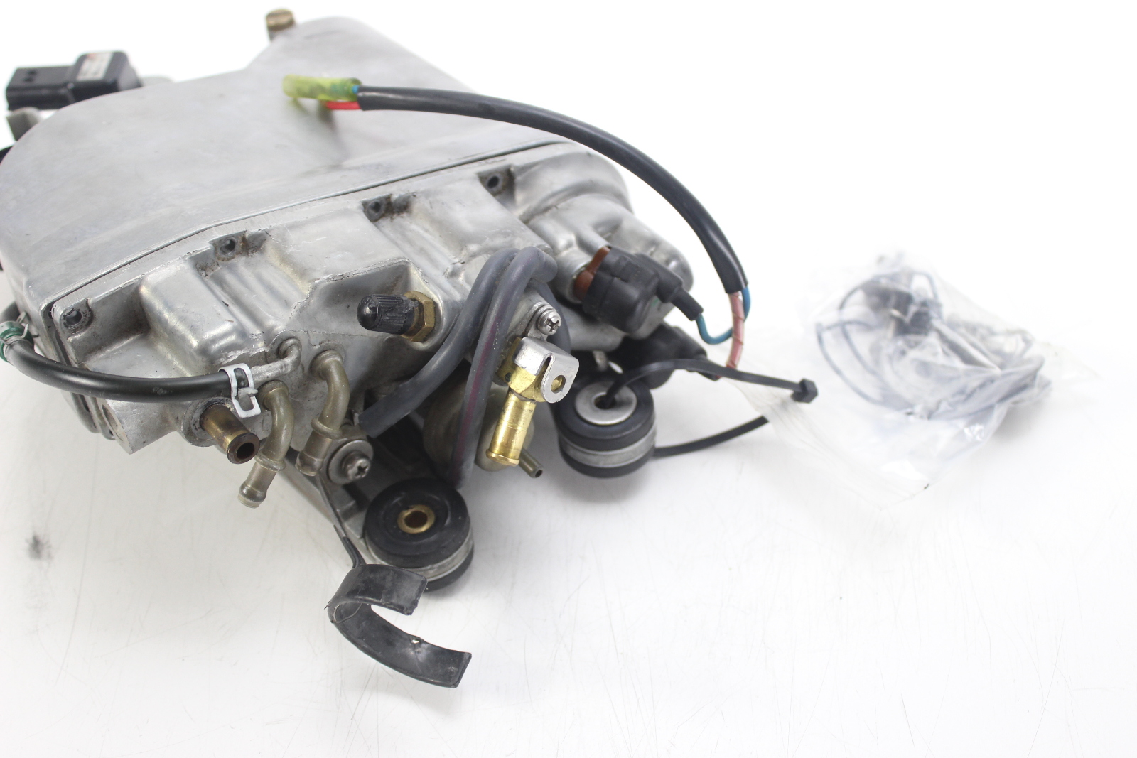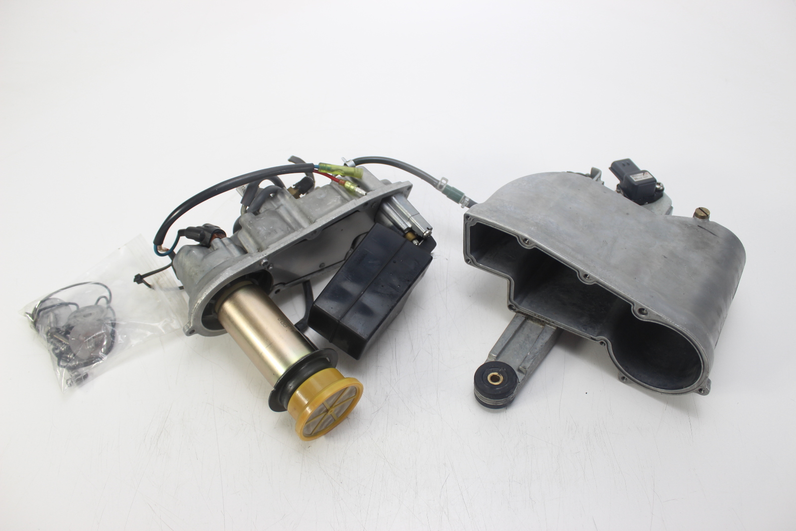 Yamaha HPDI vapor separator assembly with electric fuel pump. Body, float, cover, and VST pump. Off a 2002 Yamaha VZ200TLRA 200 HP HPDI.