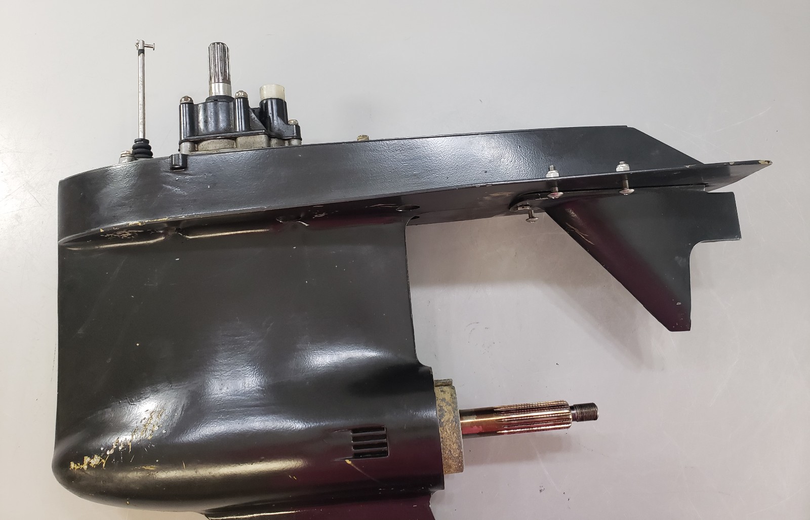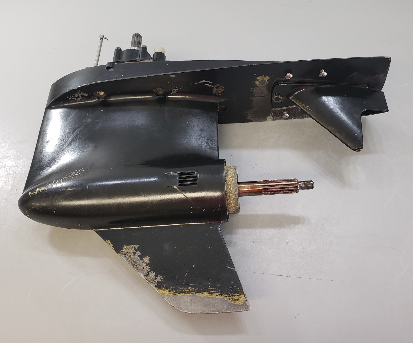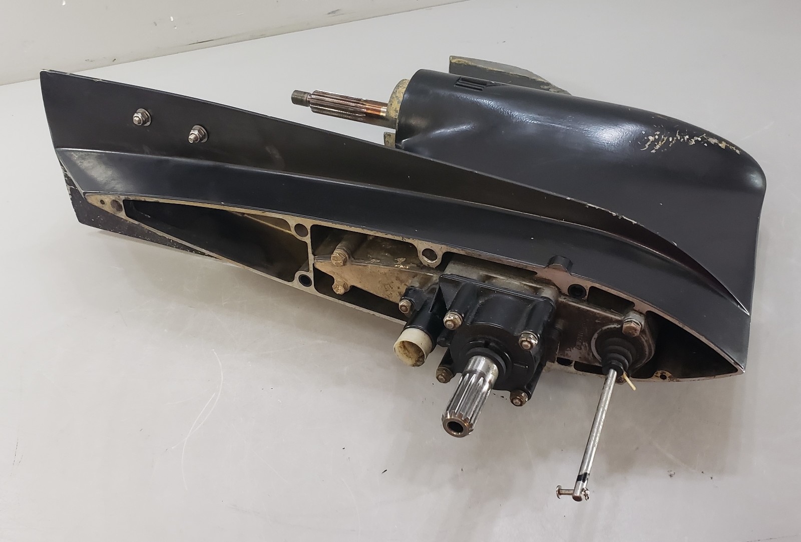This does have cosmetic flaws in the paint, such as scratches and scuffs in the paint, but this is purely cosmetic. This does come with the trim tab. There are 15 splines on the propeller shaft and 13 splines on the driveshaft. All of the splines are in excellent condition. The shafts on the unit are straight. We did perform a pressure check on this, and everything held. It does shift in and out of gear smoothly. We are listing this lower unit for as-is because we can no longer order the propeller shaft seal. Due to shipping restrictions, lower unit are shipped empty. Every lower unit requires new oil to be installed when you receive it. |