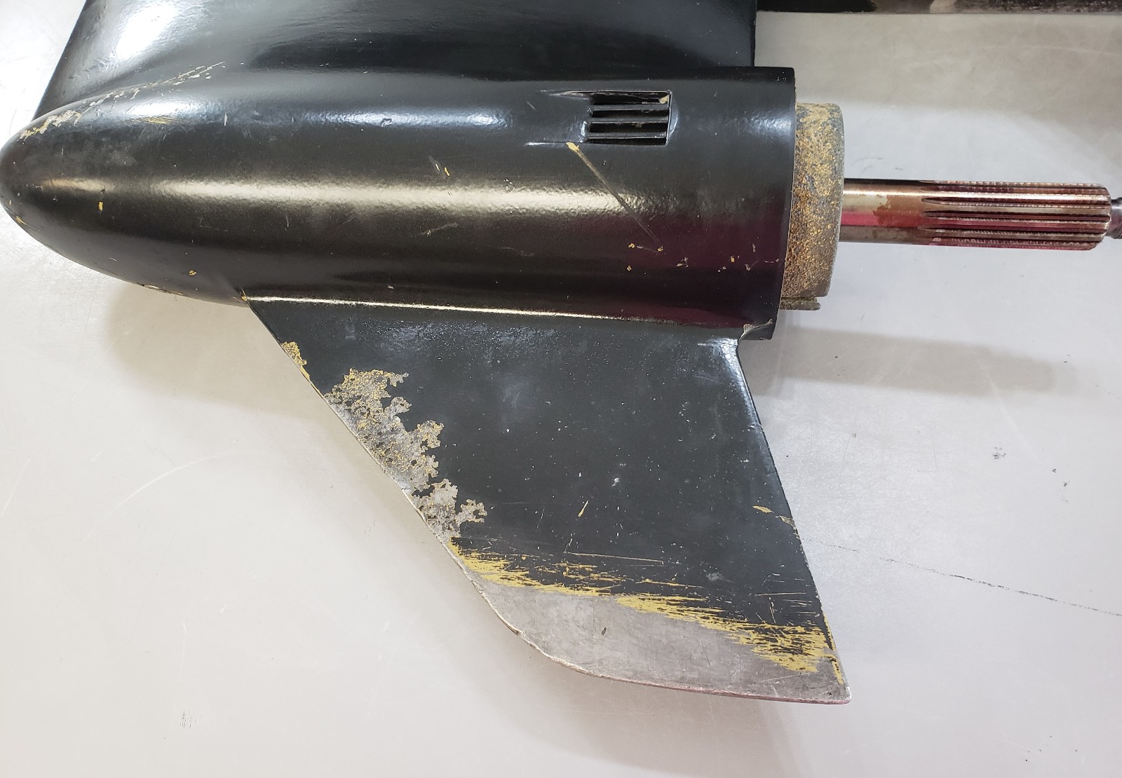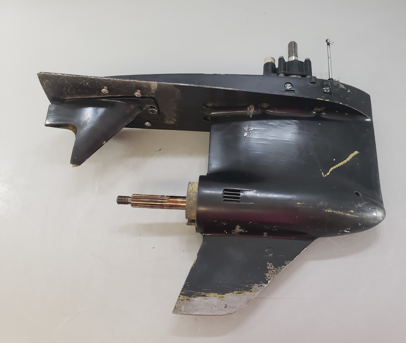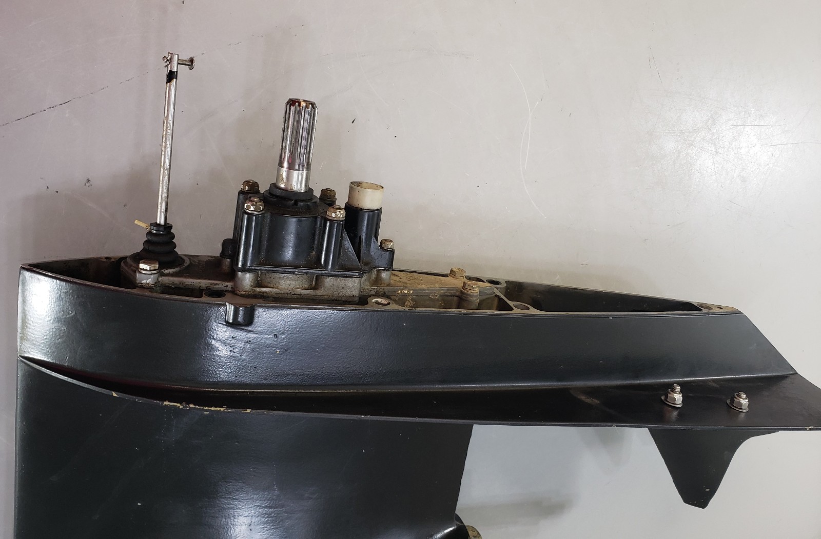 This does have cosmetic flaws in the paint, such as scratches and scuffs in the paint, but this is purely cosmetic. This does come with the trim tab. There are 15 splines on the propeller shaft and 13 splines on the driveshaft. All of the splines are in excellent condition. The shafts on the unit are straight. We did perform a pressure check on this, and everything held. It does shift in and out of gear smoothly. We are listing this lower unit for as-is because we can no longer order the propeller shaft seal. Due to shipping restrictions, lower unit are shipped empty. Every lower unit requires new oil to be installed when you receive it. |