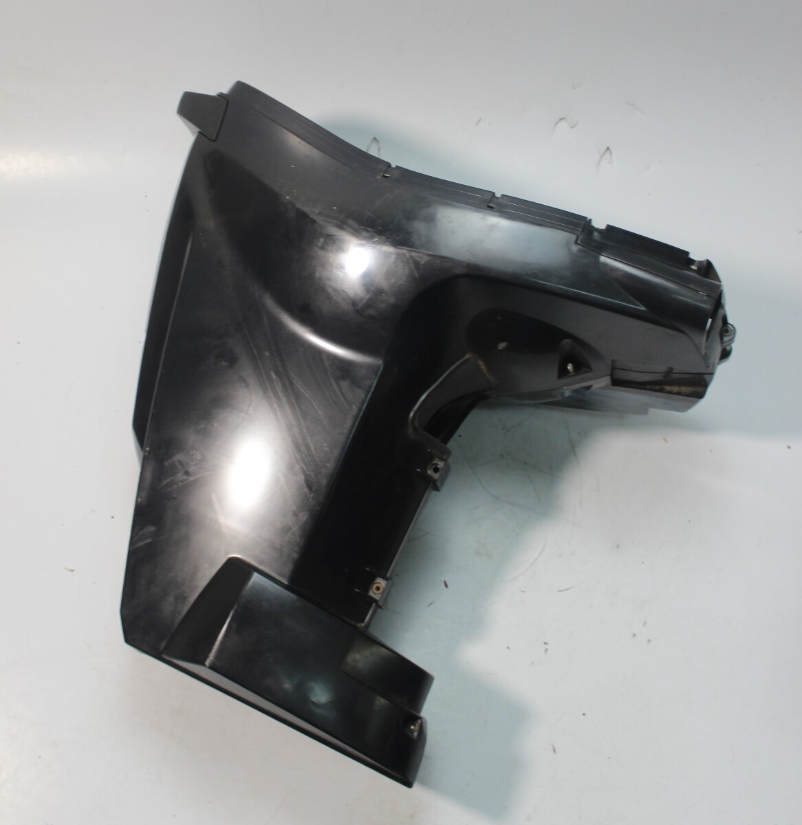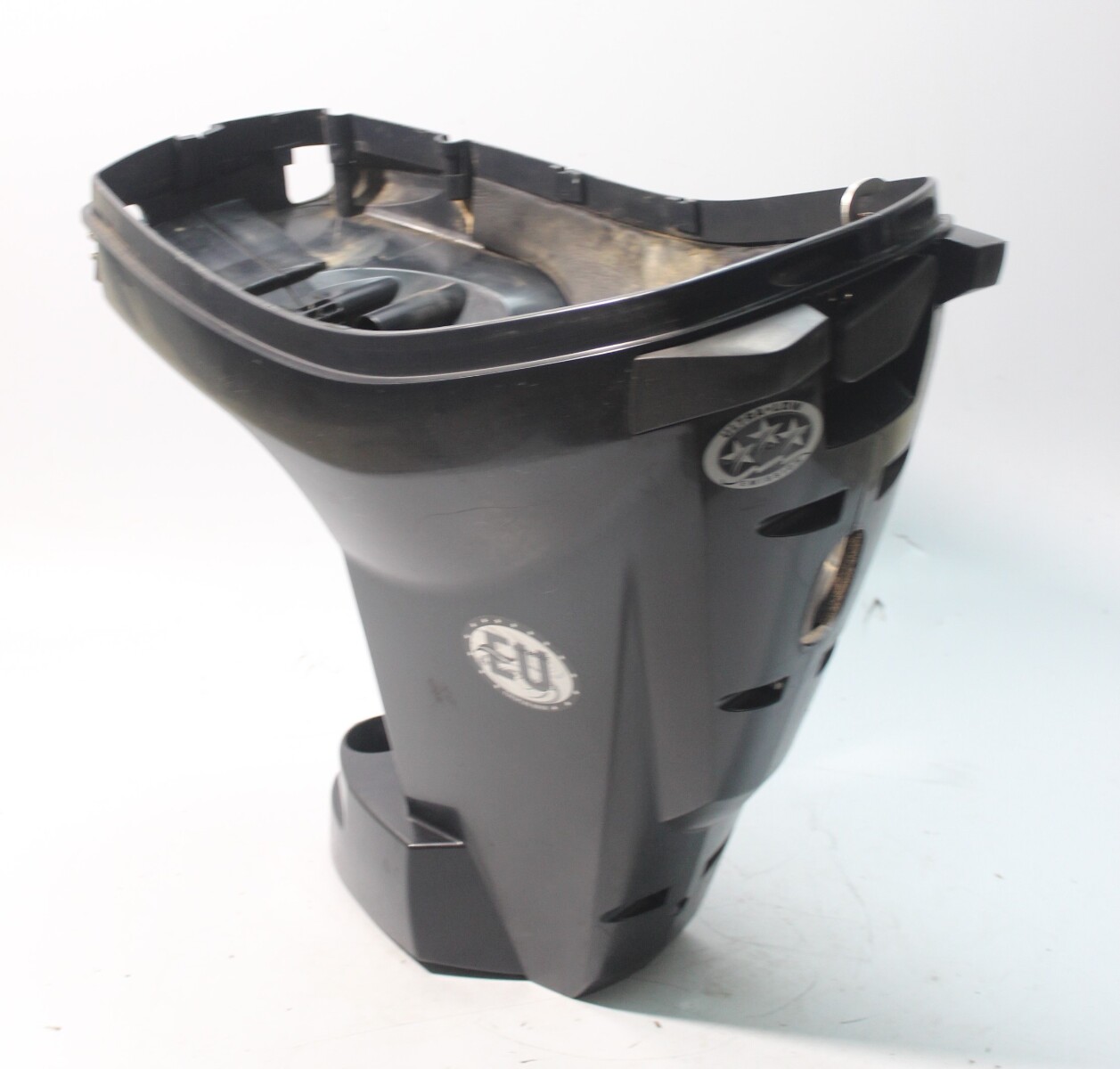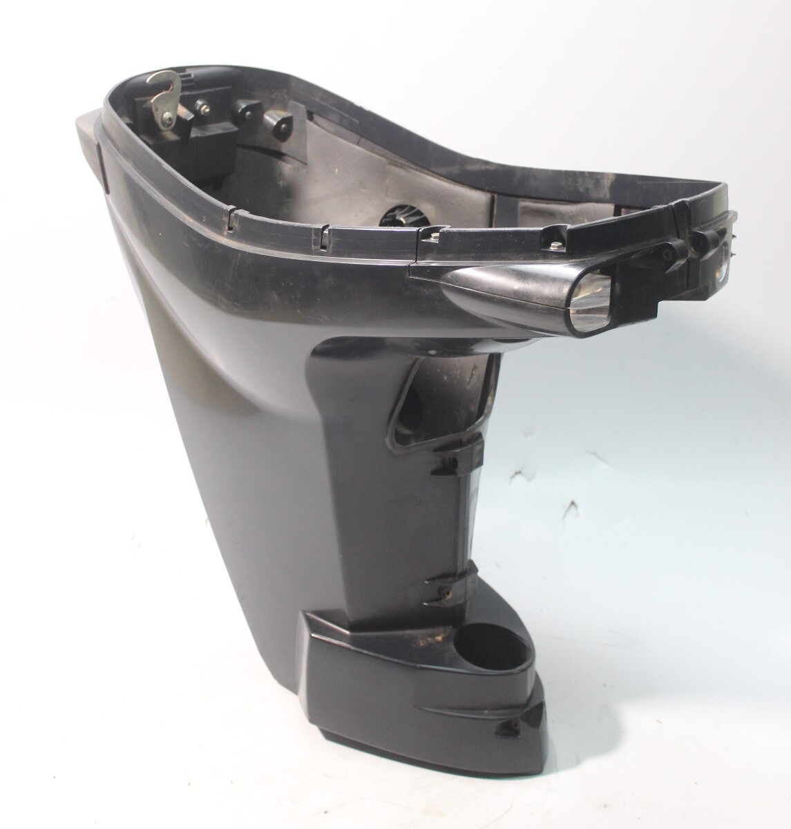 Used Evinrude E-TEC lower side cowling set removed from a freshwater engine.