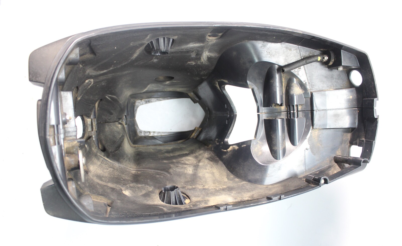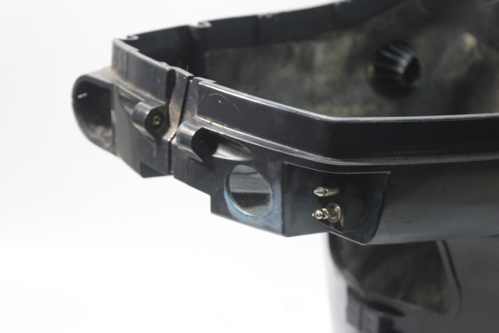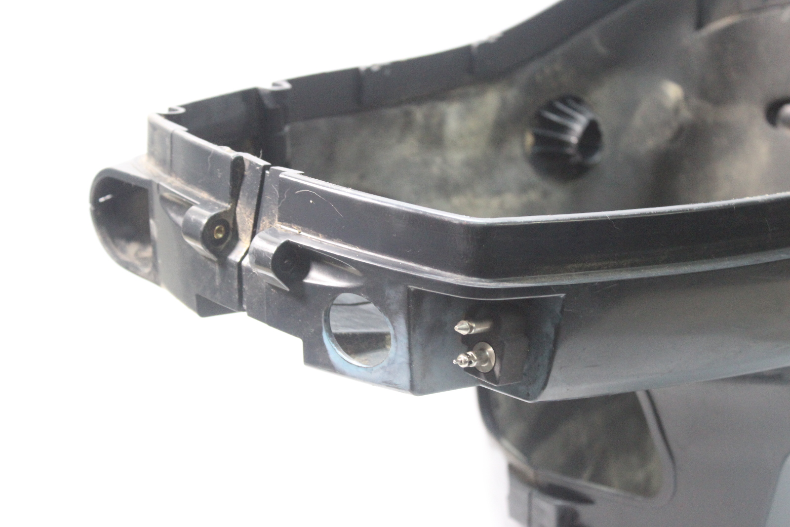 Used Evinrude E-TEC lower side cowling set removed from a freshwater engine.