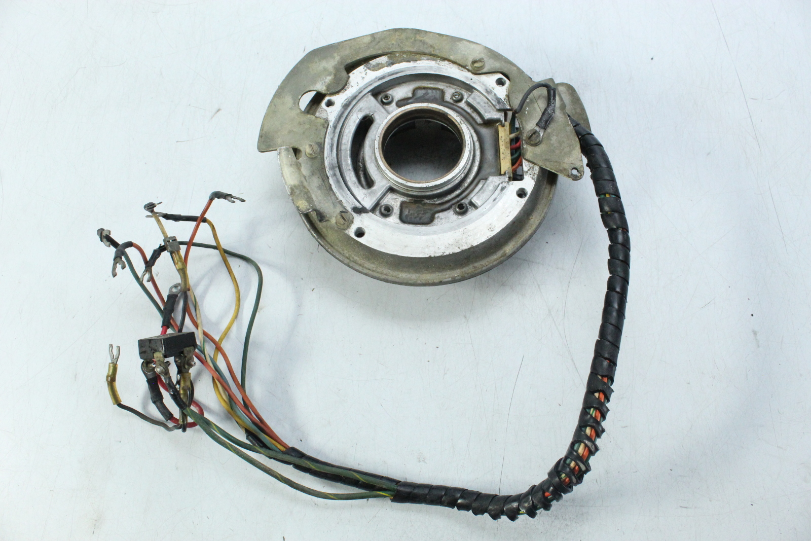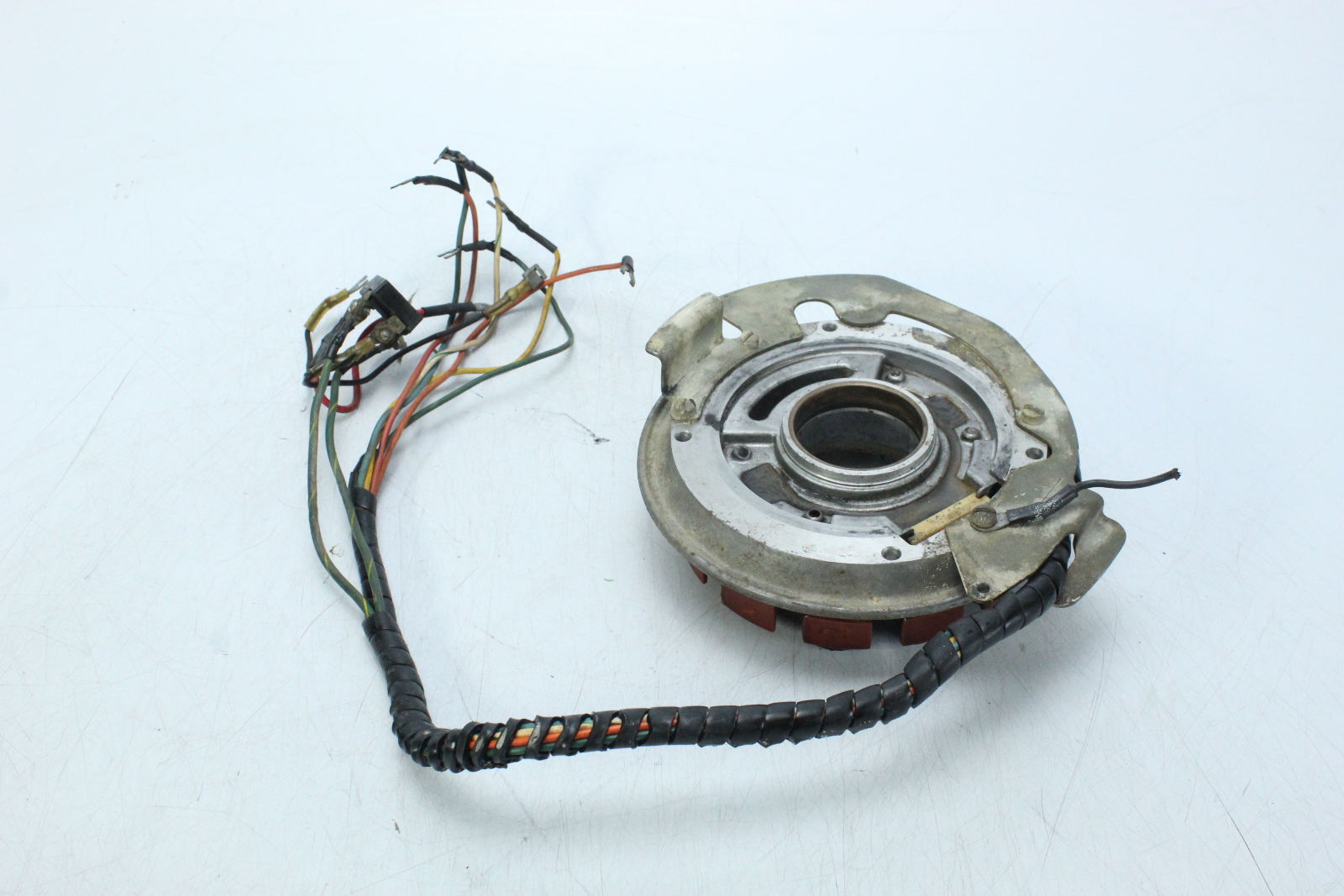 | Fits: | Removed from 1976 Stator 2 cylinder - 8 wires We have provided this cross-reference with the resources we have available in regards to fitment. This most likely will not fit every model for the years and horsepowers we have listed. We urge you to make sure this is the exact item you need by matching the part number to what is required for your motor. If you need help doing so, please contact us prior to purchasing and we would be happy to help! |