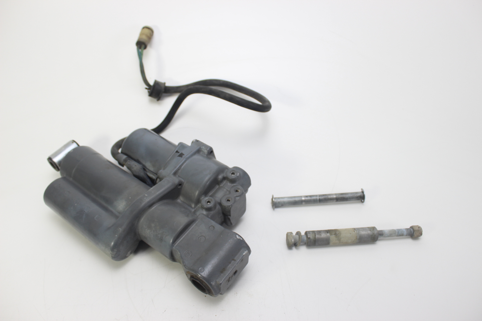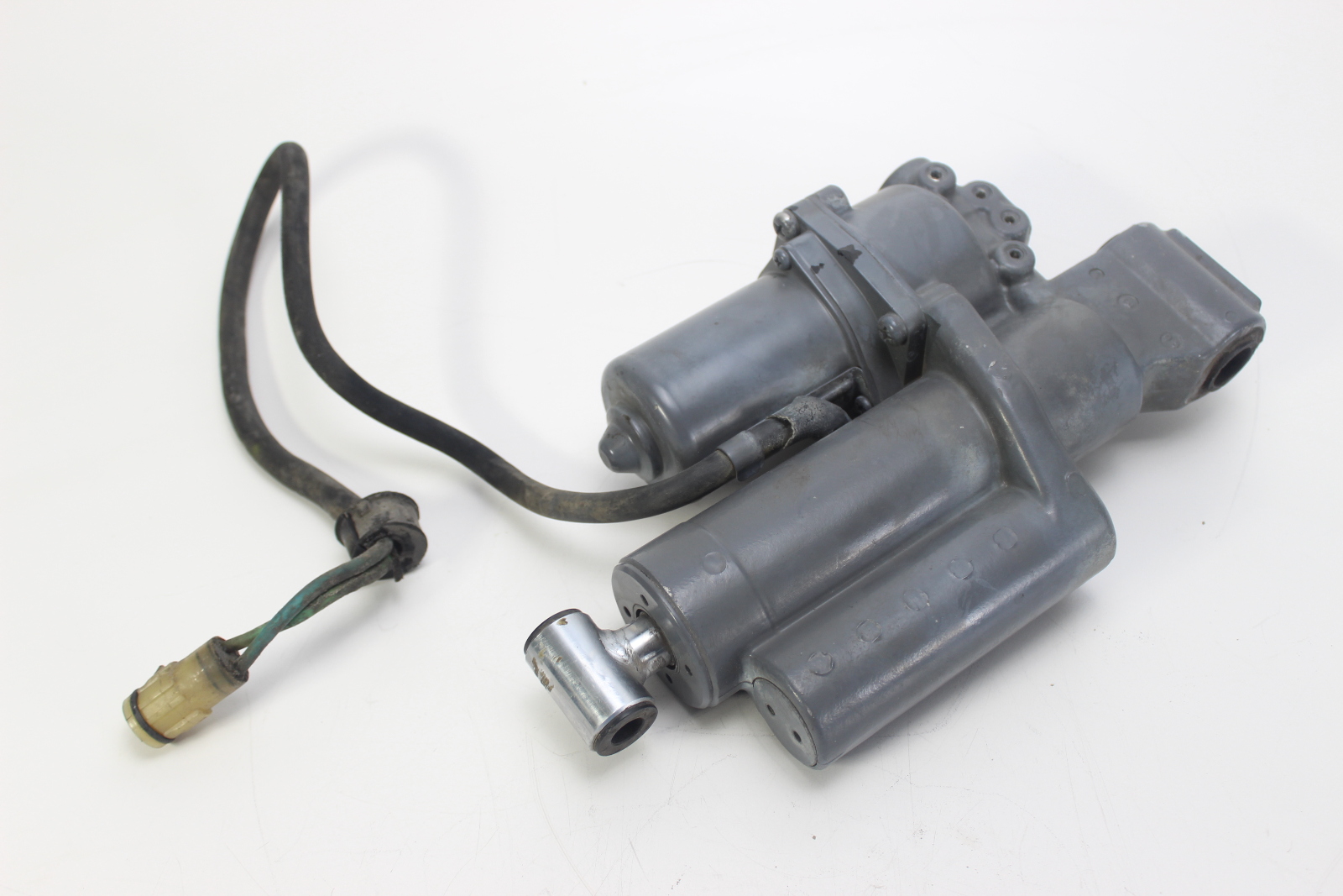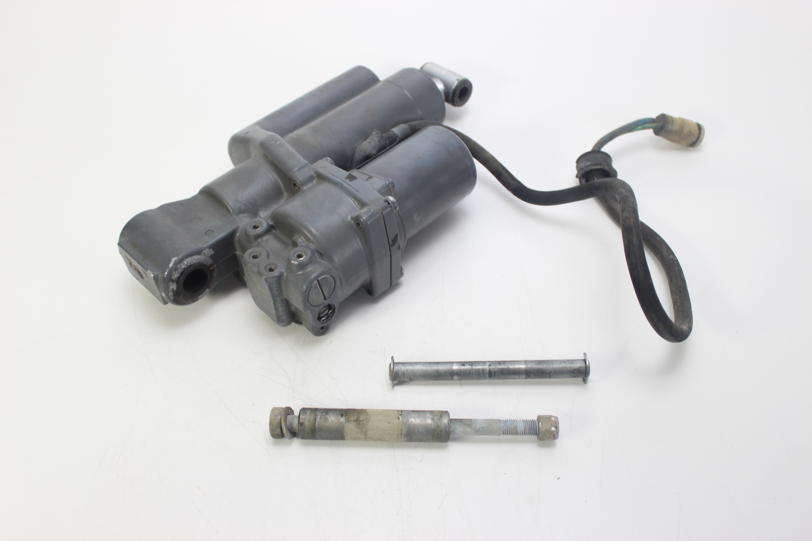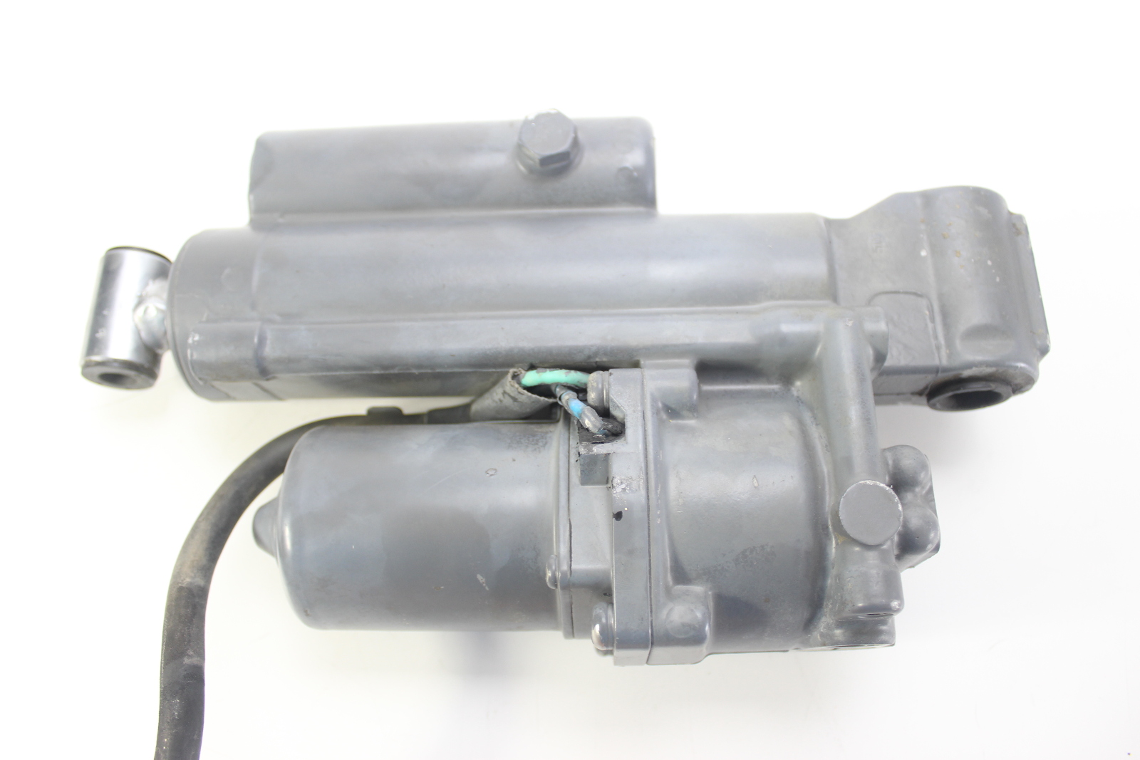 OEM Honda power trim and tilt assembly removed from a Honda 4-stroke outboard engine. This unit features the 2-wire configuration used on mid-size Honda outboards.