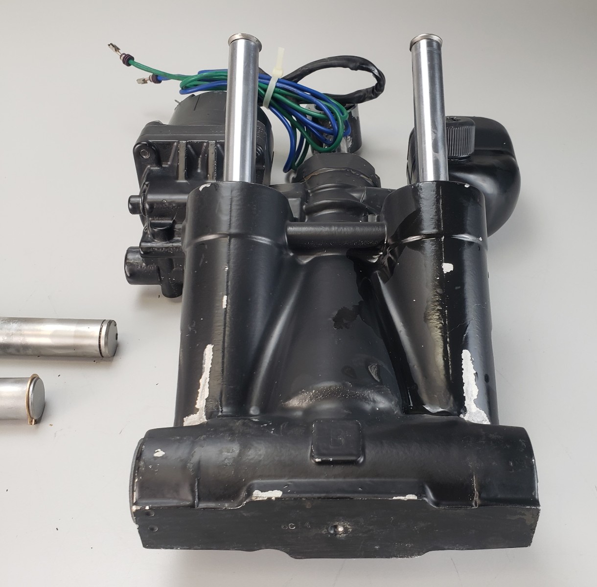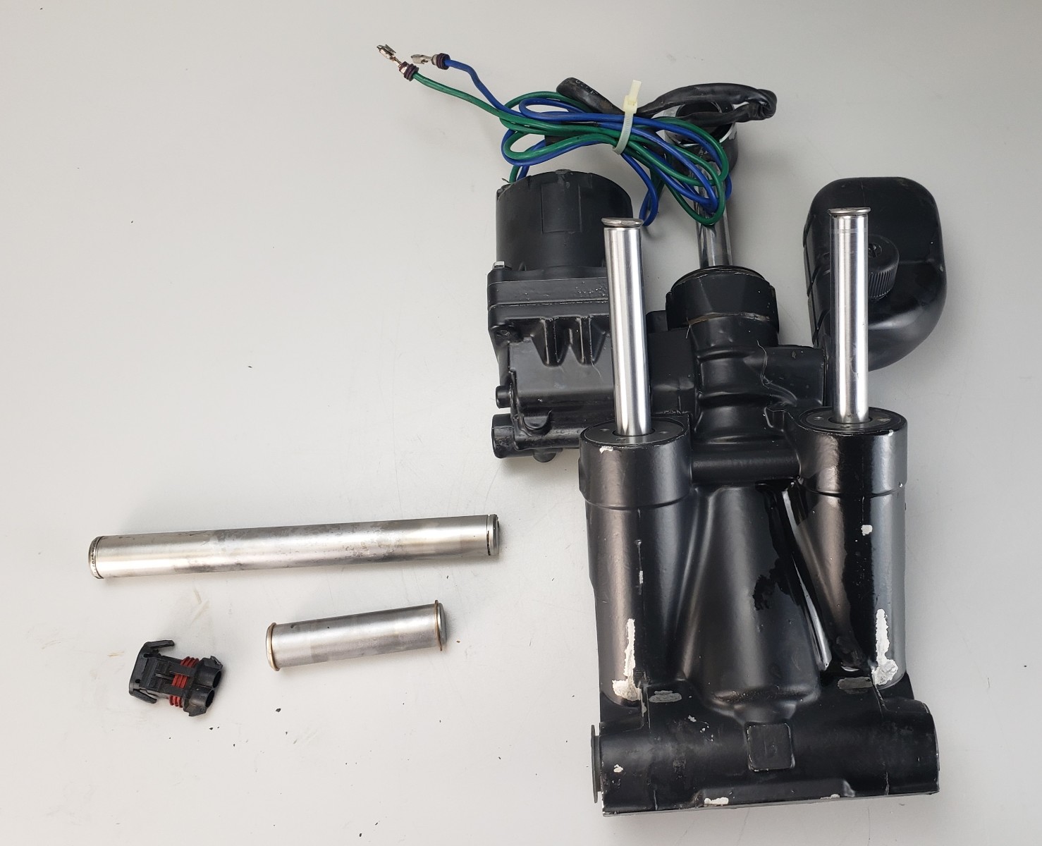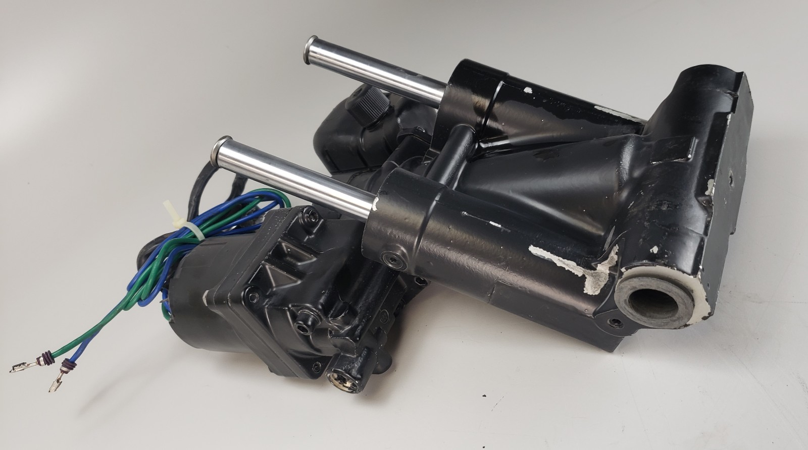 | Additional Info | This is a 2-wire power trim system. One wire is green the other is blue. Neither of the wires have been cut, burnt, or damaged. The paint is scuffed and scratched, but this is entirely cosmetic and will not effect the overall performance. This will come with the hardware in the pictures. This will make a great replacement part for your outboard! Purchase with confidence! General Information