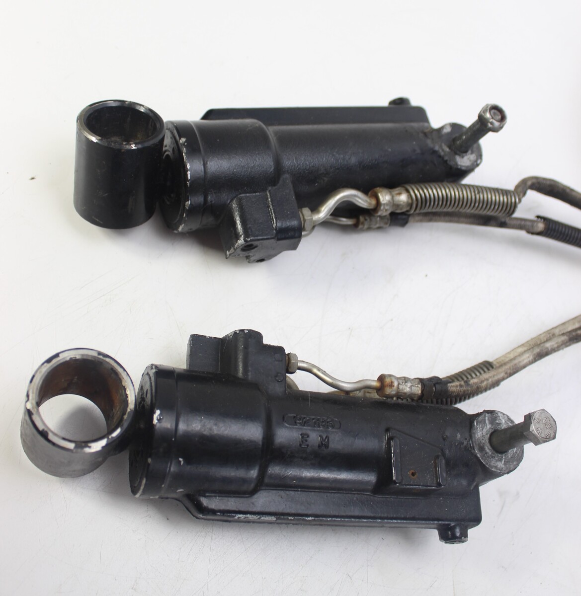 These cylinders are used on early Mercury outboards equipped with the external power trim pump system. Mercury produced several variations of these rams through the years, but they are essentially the same and will interchange.