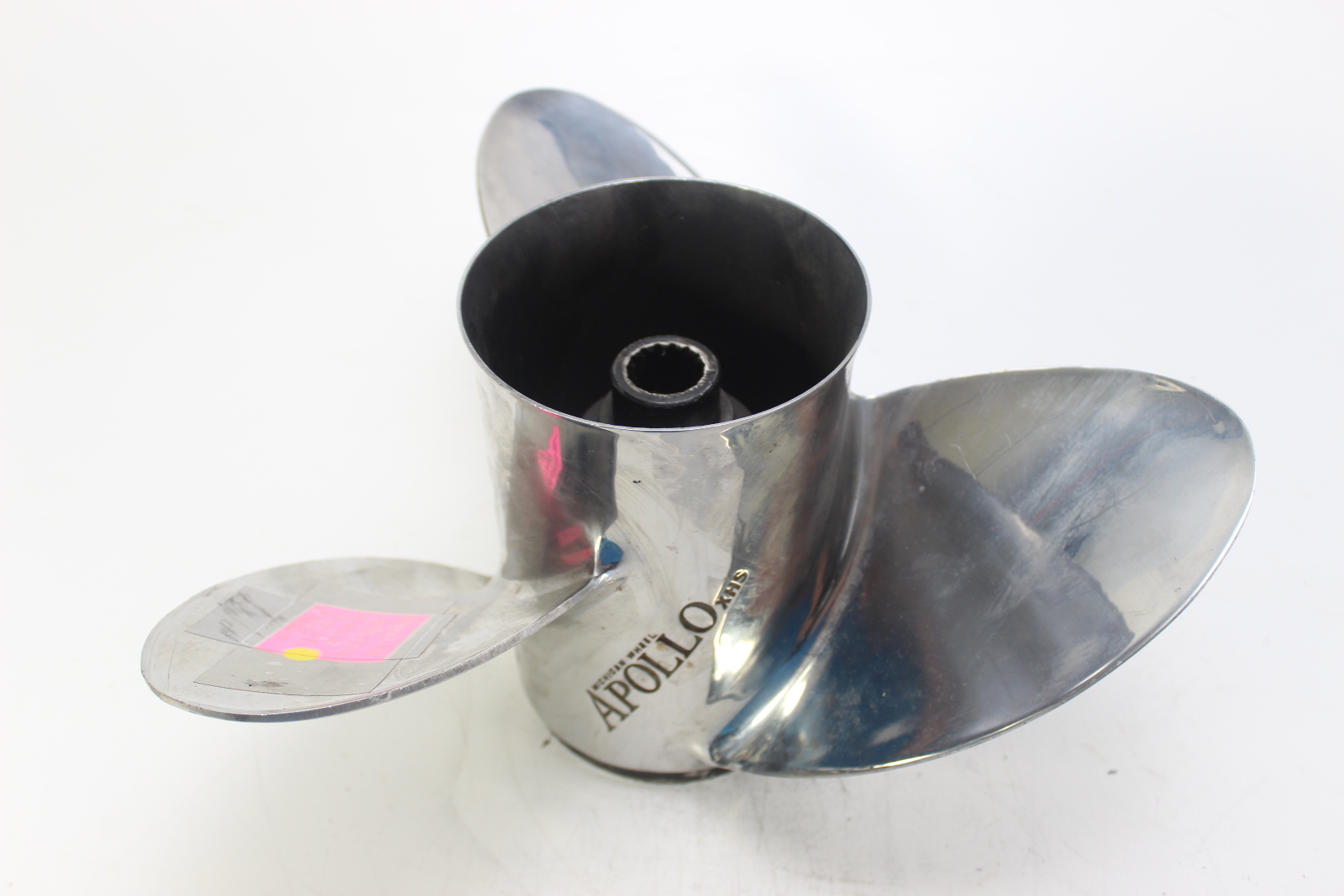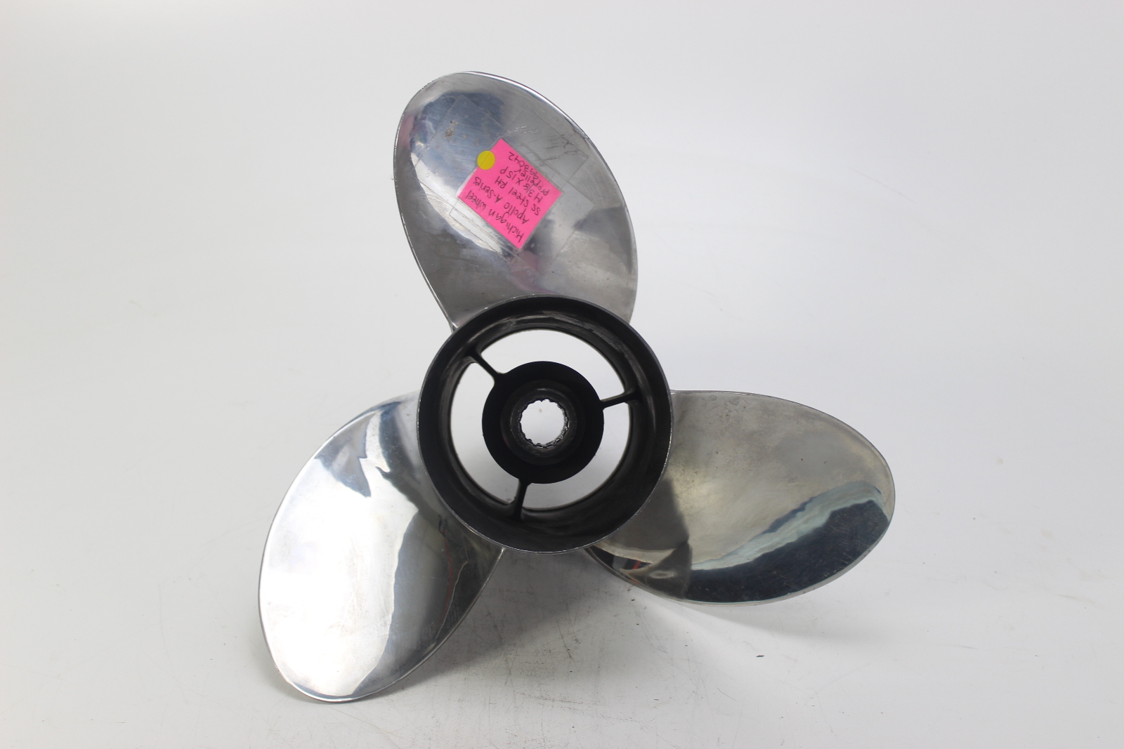 Michigan Wheel Apollo stainless steel propeller. Michigan Wheel is a well-established American propeller manufacturer producing OEM and aftermarket propellers for a wide range of outboard and sterndrive applications. Michigan Wheel has discontinued production of outboard and sterndrive propellers, making this a harder to find item. This is a 3-blade stainless propeller built for thru-hub exhaust with standard right-hand rotation. Excellent overall condition.