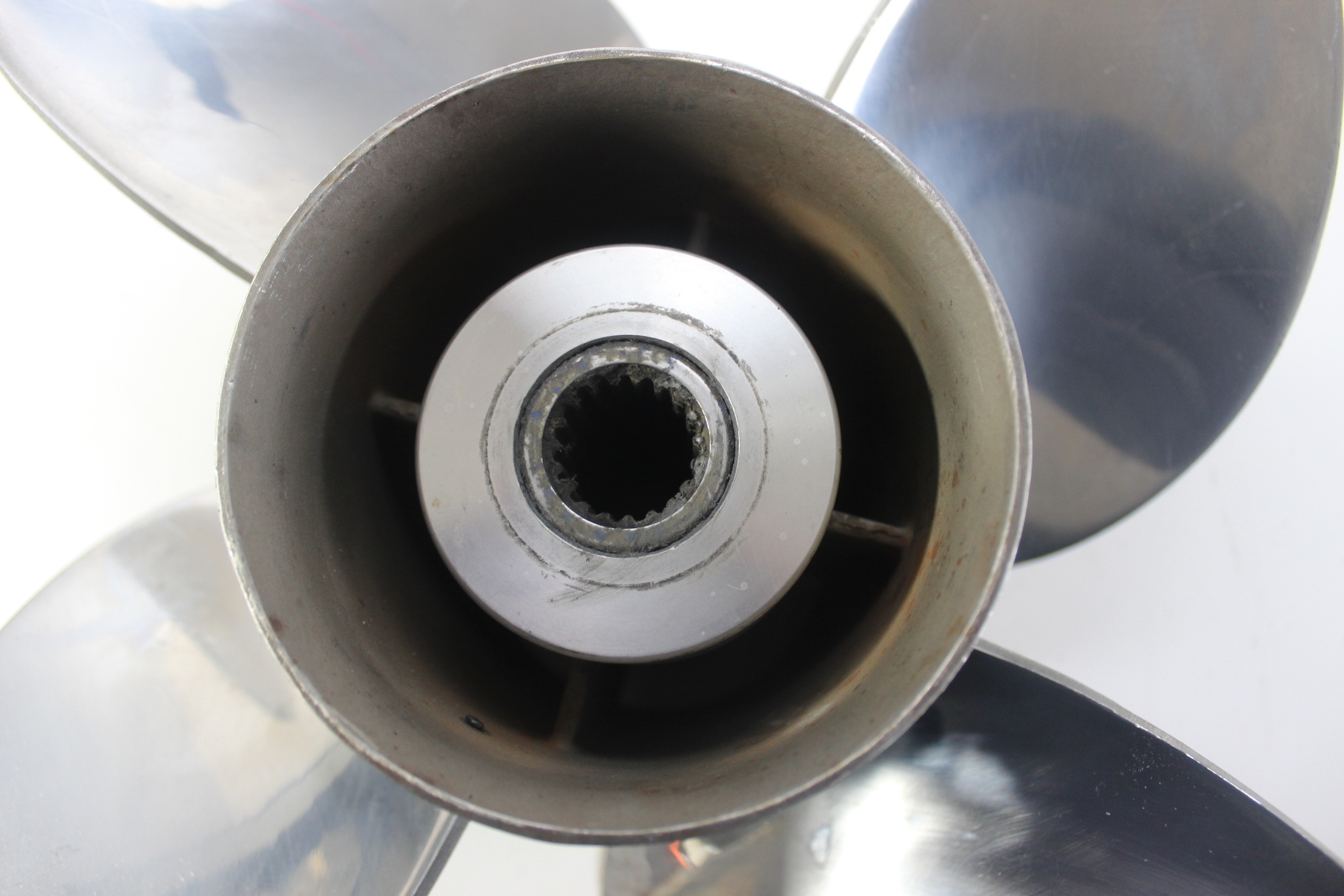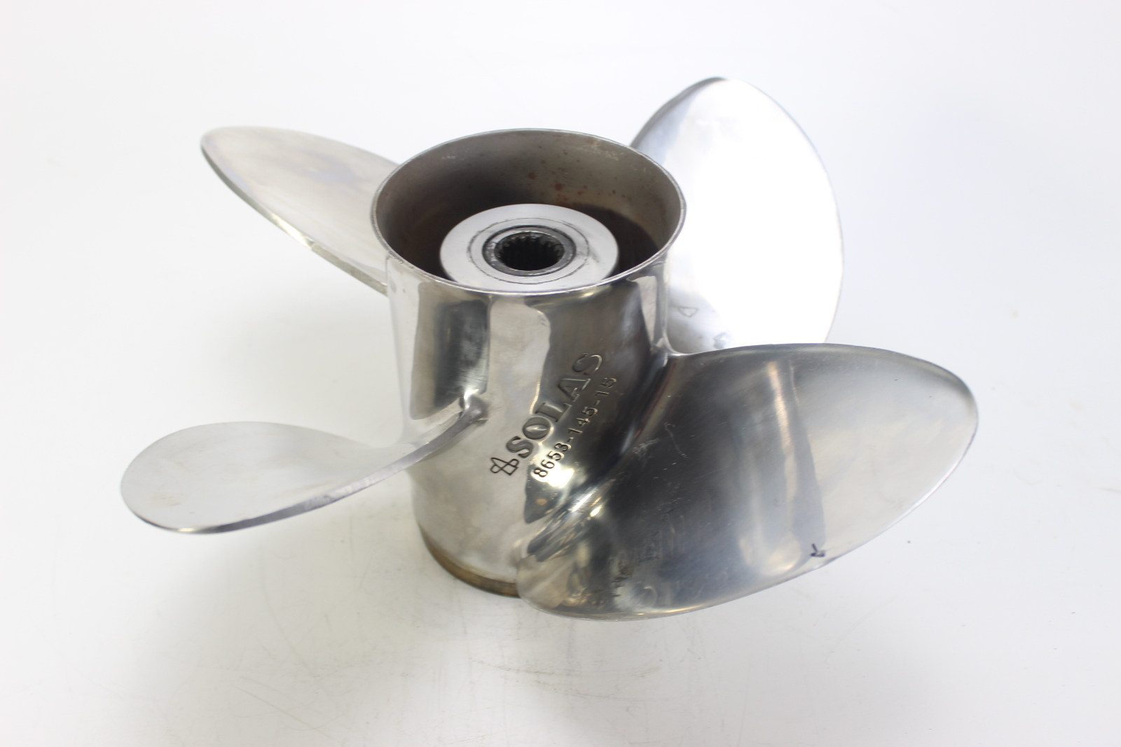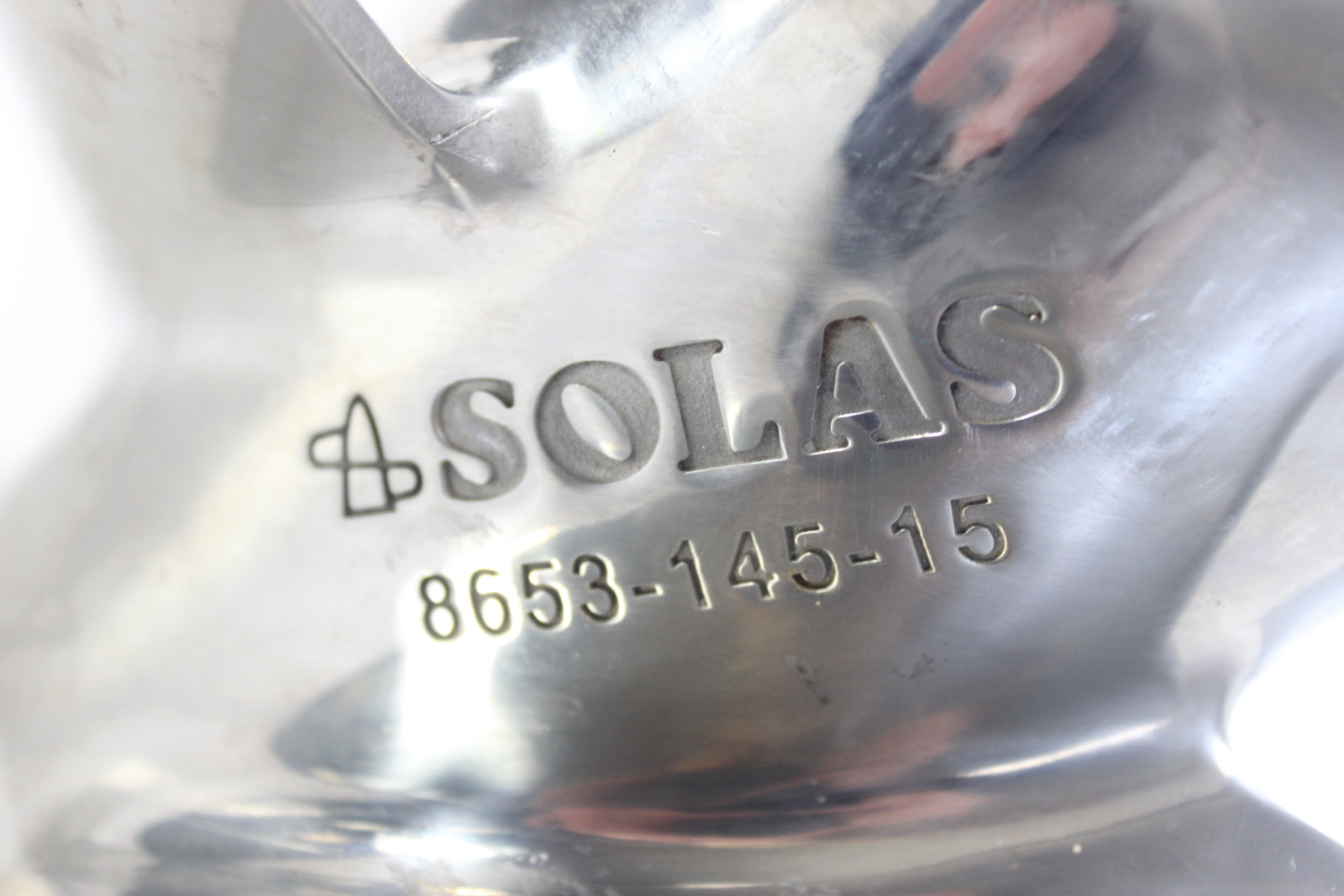 SOLAS stainless steel propeller designed for Johnson / Evinrude V4 and V6 outboards using a 15 spline prop shaft.