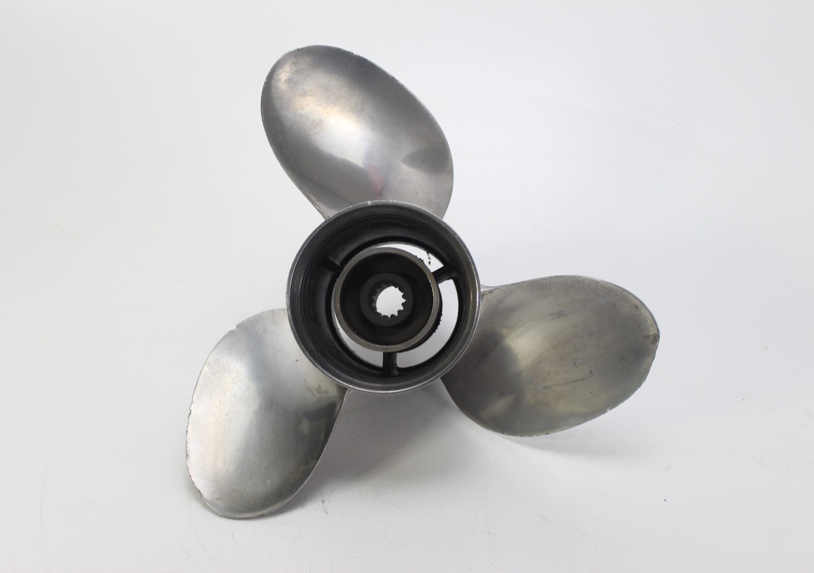 Used – Propeller is straight and in good working condition. Blades are smooth with normal cosmetic wear from prior use. No cracks or major bends.