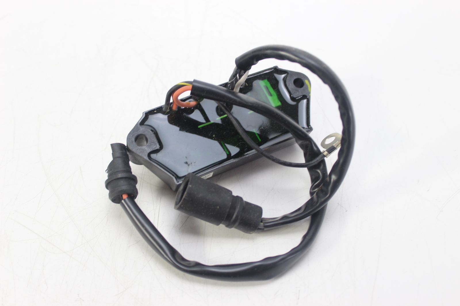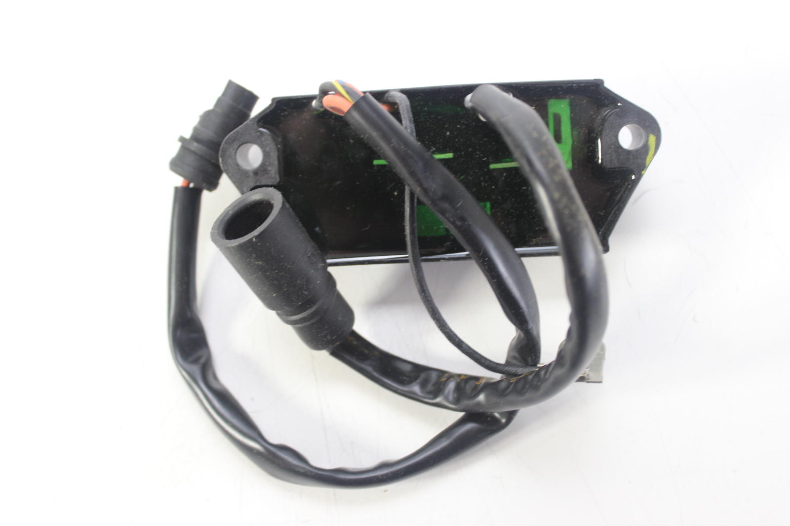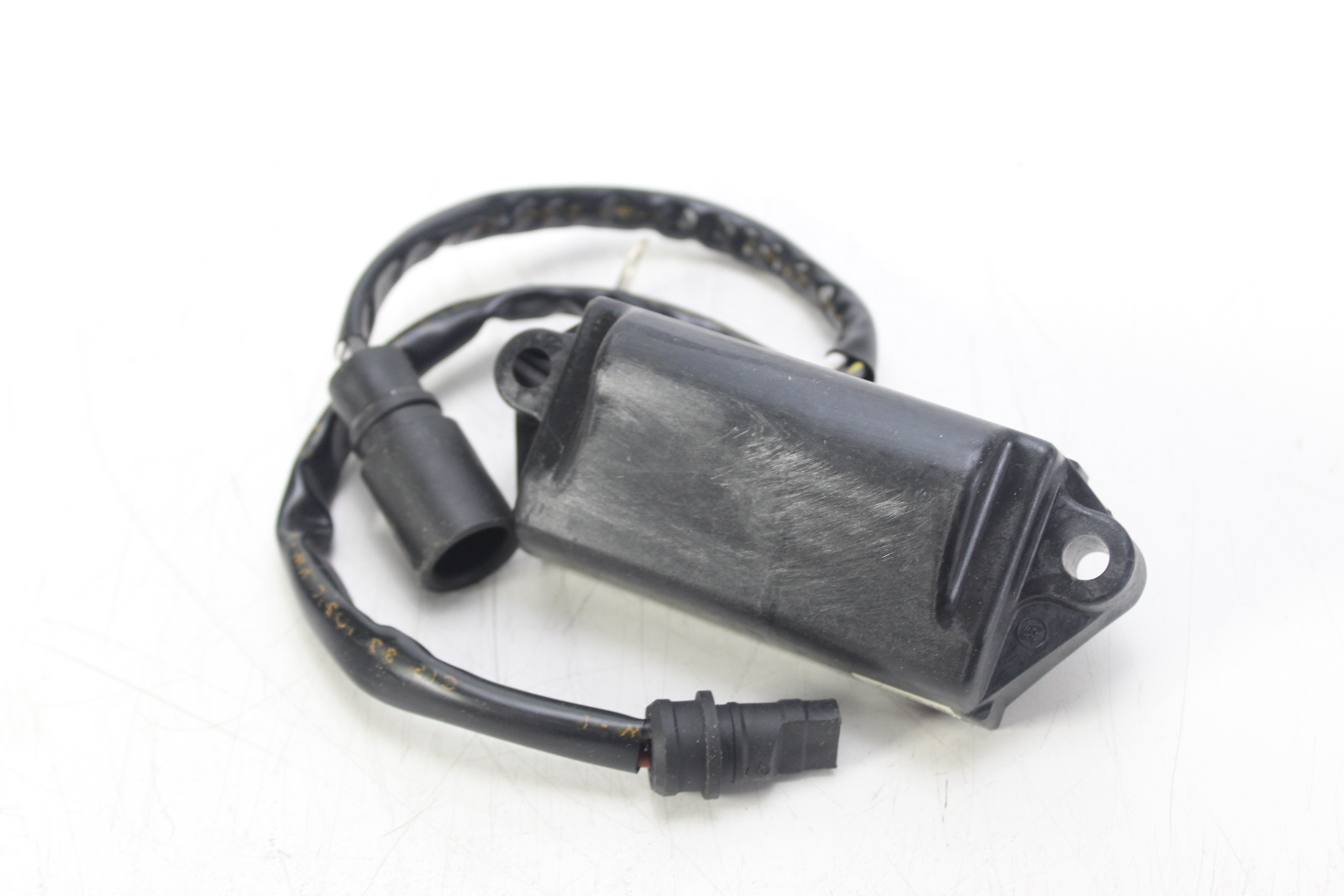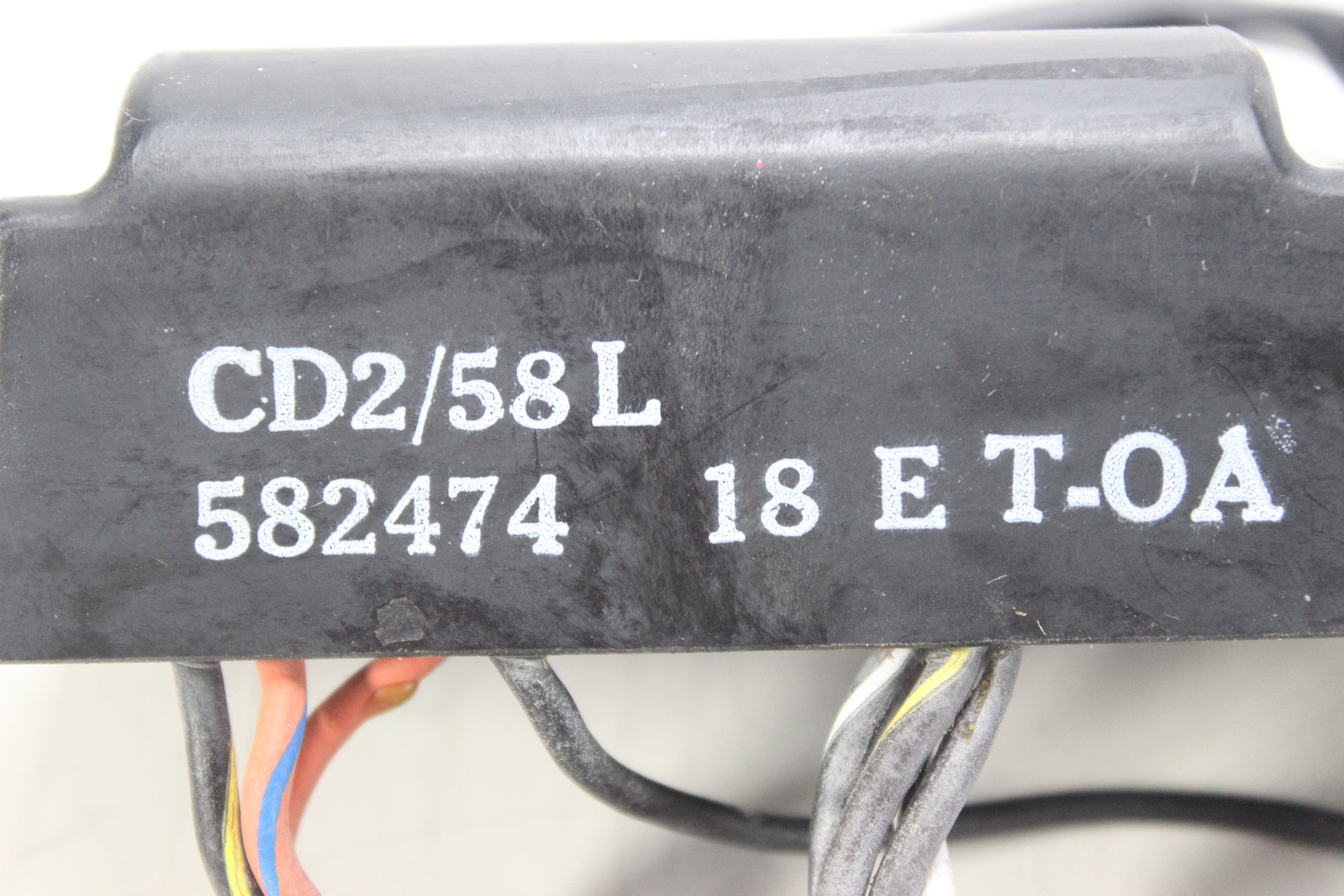 New old stock OEM Johnson Evinrude CD2 power pack for 2-cylinder commercial outboards. Controls spark timing via a 2-wire trigger and includes a 5800 RPM limiter. Works with the stator and trigger to fire the ignition coils.